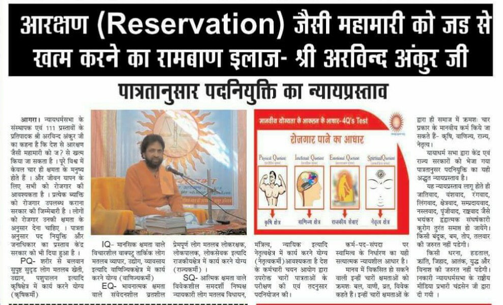 Today, Shri Guru ji has sent a letter to Shri Pallam Raju, Minister of Human Resource & Development of Govt. of India about the "Reformation of Education & Employment System & Policies in India. And 16-12-2013, a Copy of this letter was sent to Prime Minister of India Shri Manmohan Singh, Human Right Comission of India