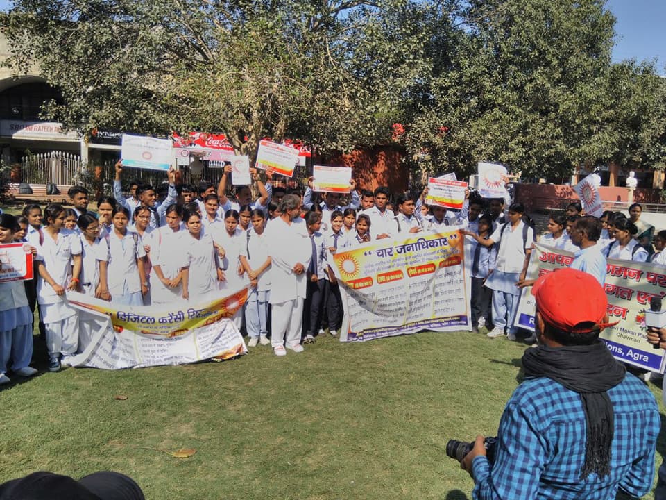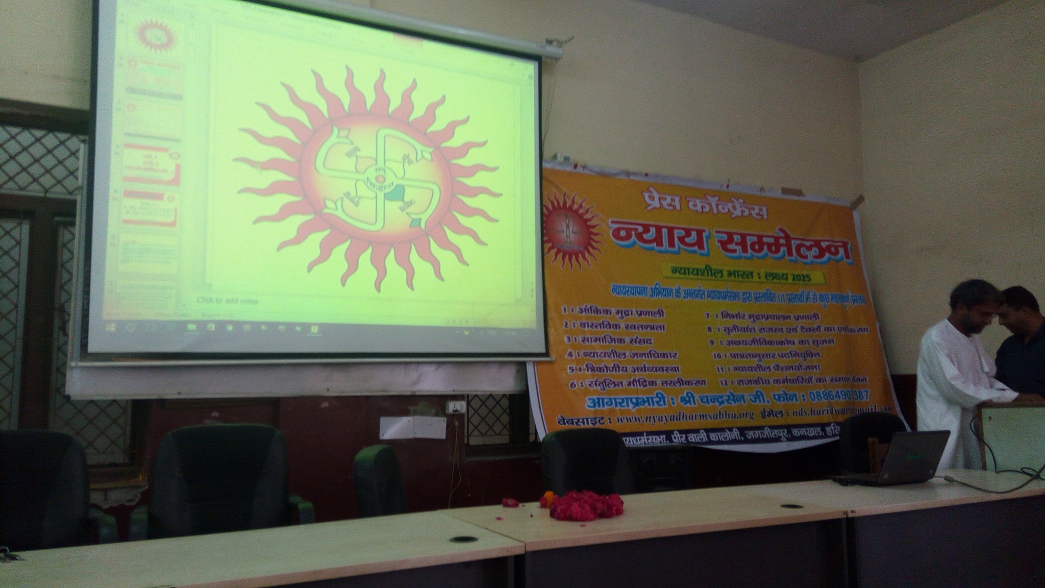 Pres Confrence & Public Meeting has been organized at Youth Hostel, Sanjay Place Agra at 10: am .Second Public Meeting has been organized in Anand Engineering College Agra. Being started the seminar, Shri Guru ji has published the 111 proposal made by Nyaya Dharm Sabha to resolve the Economical, National and Social problems from India & World. Second Day Meeting has been organized in Dr. MPS collge Agra at 10:00 am Shri Guru ji has declared Shri Guru ji has also mentioned that Digital Currency can be operated with "No Expense" and the expenses that comes on printing & securing the paper currency can be saved and invested on other urgent Public Interest.